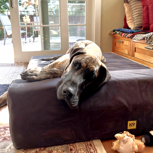 Bought this bed for our 9 year old Great Dane. He needs a big bed and a supportive one in his geriatric years. He likes to rub his face on it and it’s easy to wipe off any eye goobers.